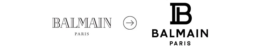In recent years we've seen luxury brands shifting toward logos that are more versatile and modern (and even sometimes simplified)—from sleek serifs to bold sans serifs: Balmain went from a delicate font to a bolder version with a thick monogram; Yves Saint Laurent went from its familiar interlocking "YSL" to a simple two-color sans serif; Burberry went through numerous iterations of its logo before settling on its current sans serif typeface with the classic Burberry pattern embedded within the letters.
